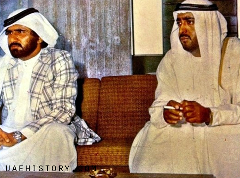 الشيخ زايد بن سلطان وإلى جانبه الشيخ مبارك بن ...