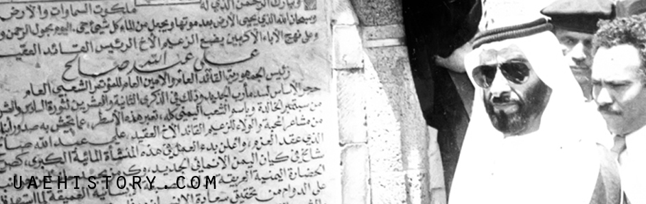 الشيخ زايد خلال وضع حجر الأساس لسد مأرب الجديد عام 1984