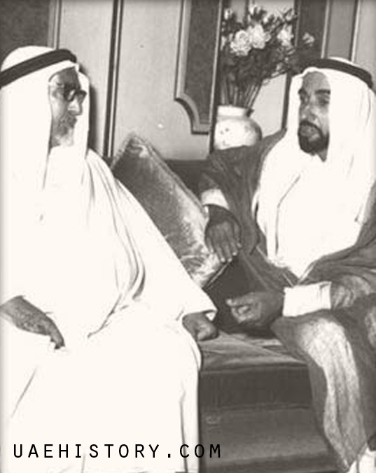 الشيخ زايد بن سلطان وإلى جانبه الشيخ مبارك بن ...