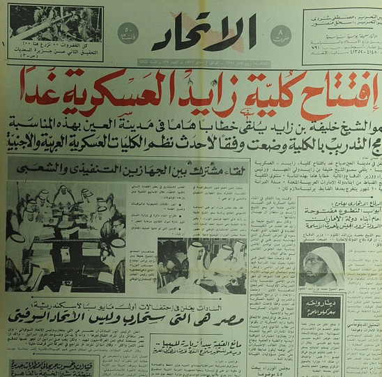 Al-Ittihad Newspaper celebrating the Union in 1972