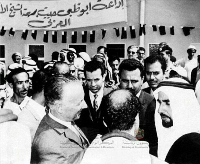 الشيخ زايد خلال افتتاح مجطة إذاعة أبوظبي –