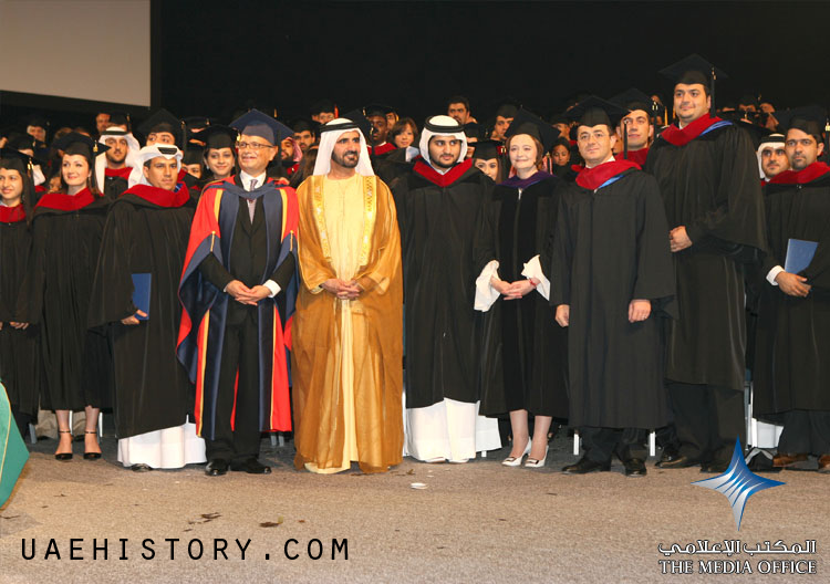 الشيخ محمد وولده الشيخ مكتوم في حفل تخرج الجامعة