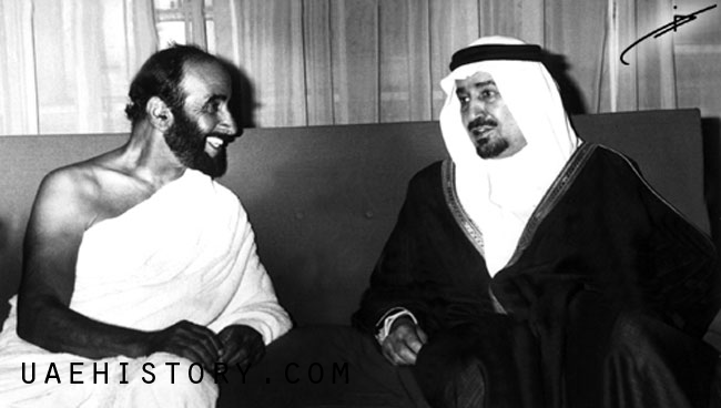 الشيخ زايد بن سلطان وإلى جانبه الشيخ مبارك بن ...
