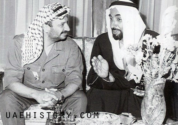 الشيخ زايد مجتمعاً مع الزعيم الفلسطيني ياسر ...