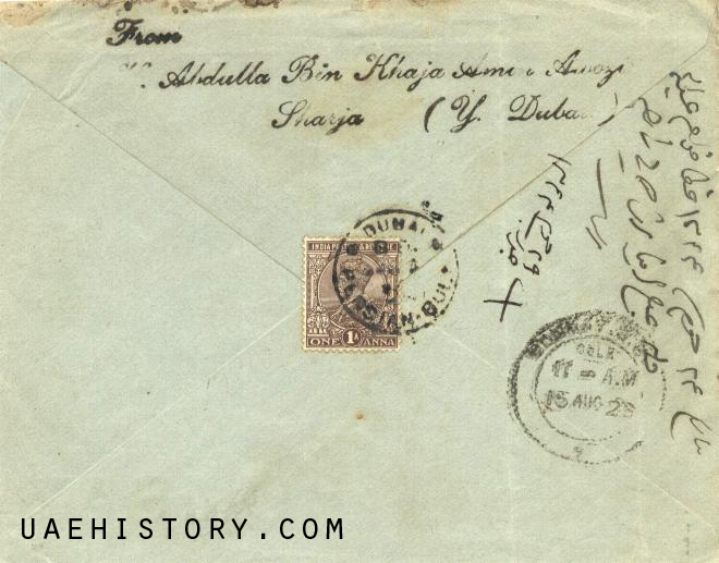 رسالة مرسلة من الشارقة عن طريق مكتب بريد دبي عام