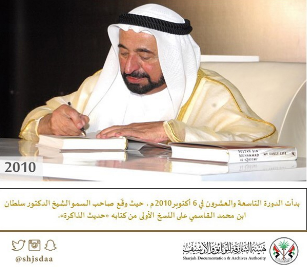 الشيخ سلطان بن محمد القاسمي أثناء توقيع النسخ ...