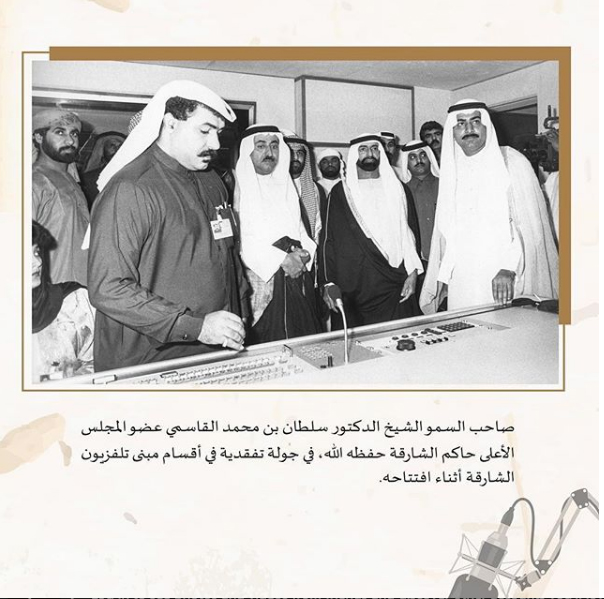 الشيخ سلطان بن محمد القاسمي خلال افتتاحه تلفزيون