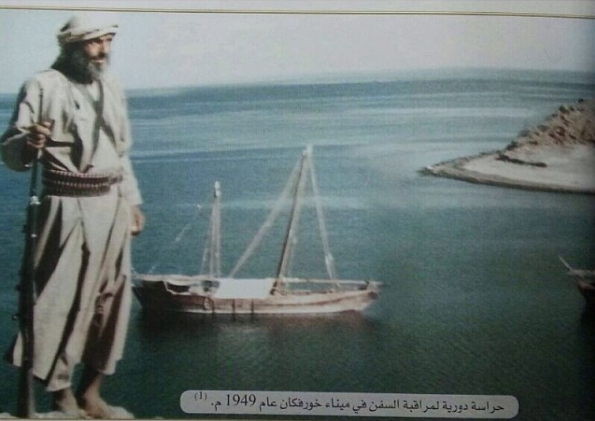 حراسة دورية لمراقبة السفن في ميناء خورفكان عام ...