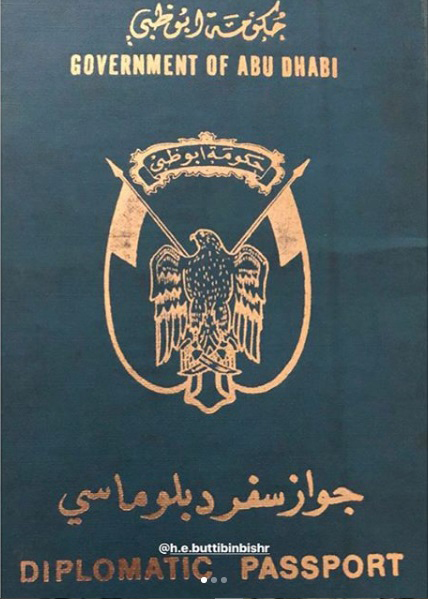 جواز السفر الدبلوماسي لحكومة أبوظبي الخاص بالشيخ