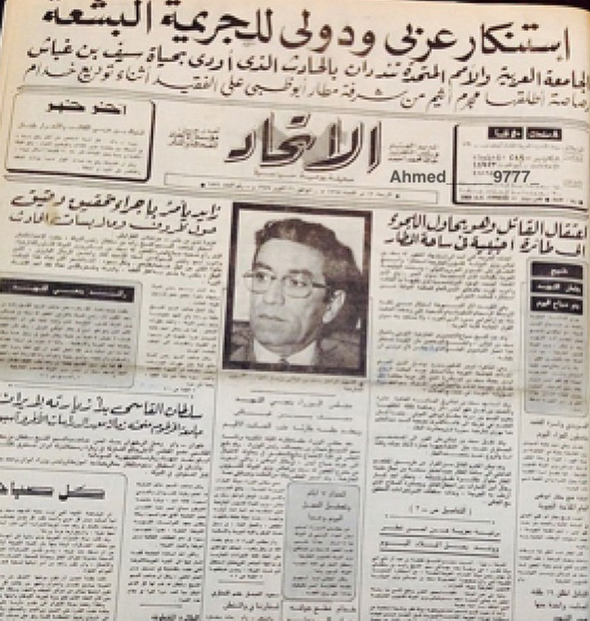 جريدة الإتحاد في اليوم التالي لجريمة اغتيال سيف ...
