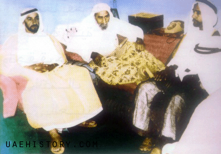 الشيخ زايد بن سلطان وإلى جانبه الشيخ مبارك بن ...