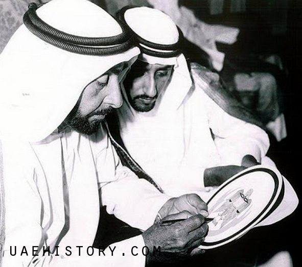 Sheikh Zayed and Sheikh Faisal Al-Qassimi in 1976