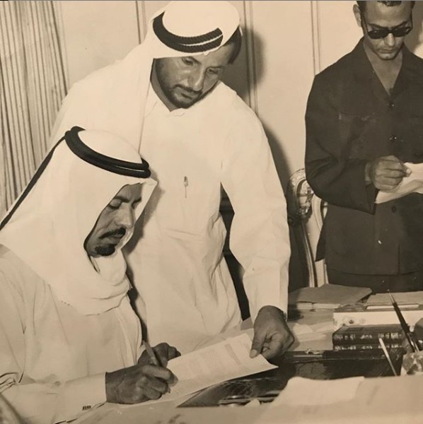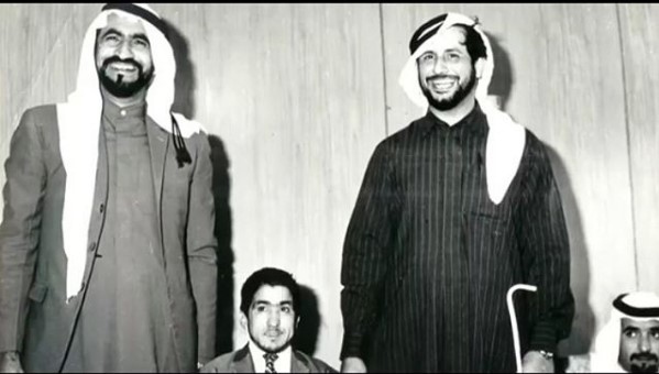 الشيخ زايد بن سلطان وإلى جانبه الشيخ مبارك بن ...