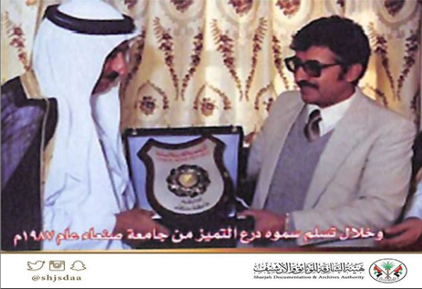 الشيخ سلطان بن محمد القاسمي خلال تسلمه درع ...