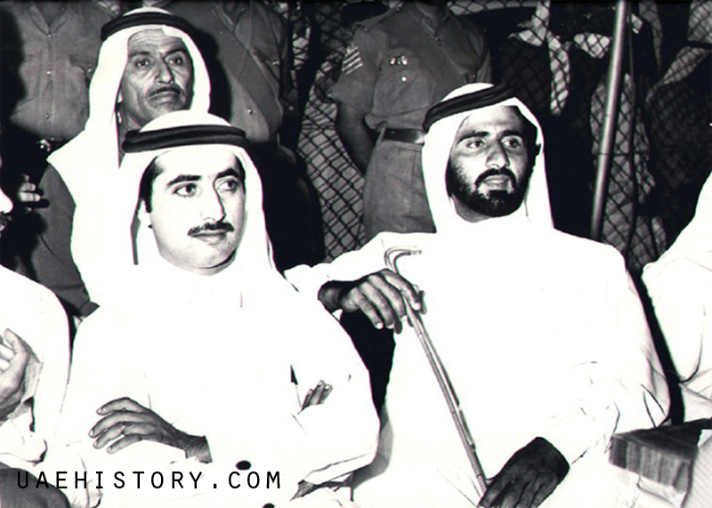 الشيخ زايد بن سلطان وإلى جانبه الشيخ مبارك بن ...