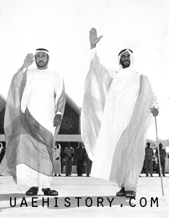 阿拉伯联合酋长国领导在1972年拉斯海马酋长国加入阿联酋后的照片