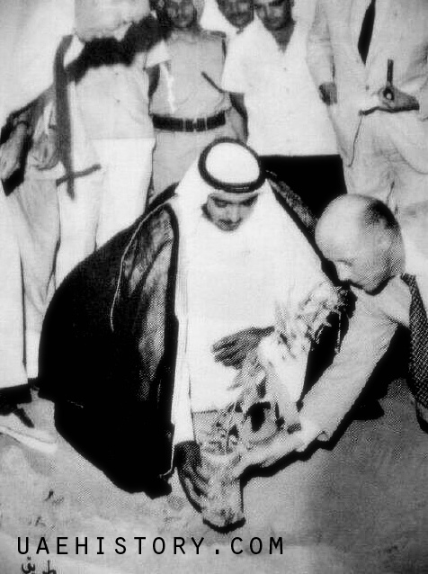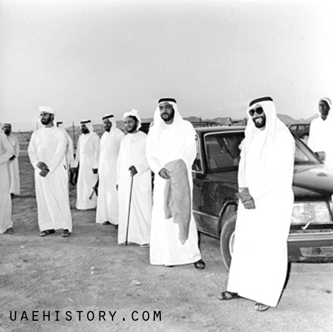 الشيخ زايد بن سلطان وإلى جانبه الشيخ مبارك بن ...