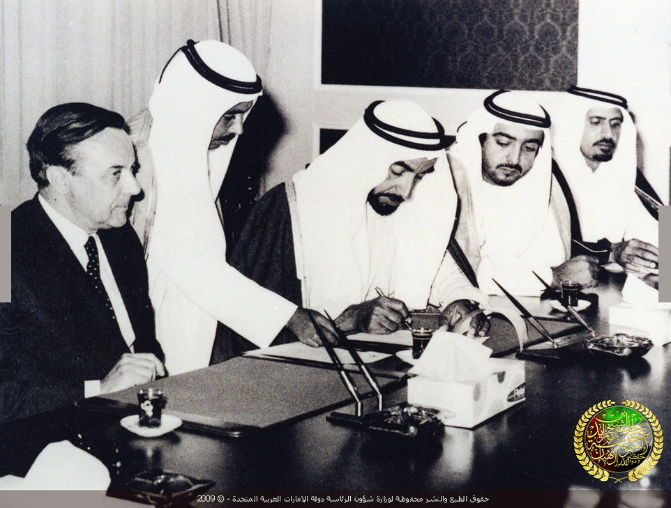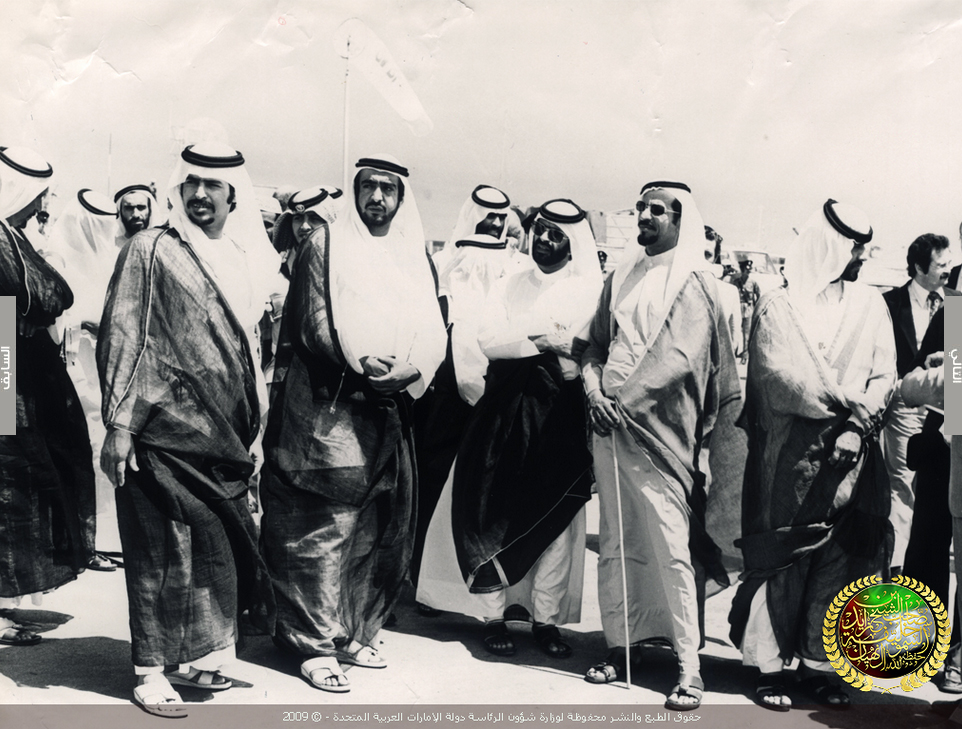 الشيخ زايد بن سلطان وإلى جانبه الشيخ مبارك بن ...