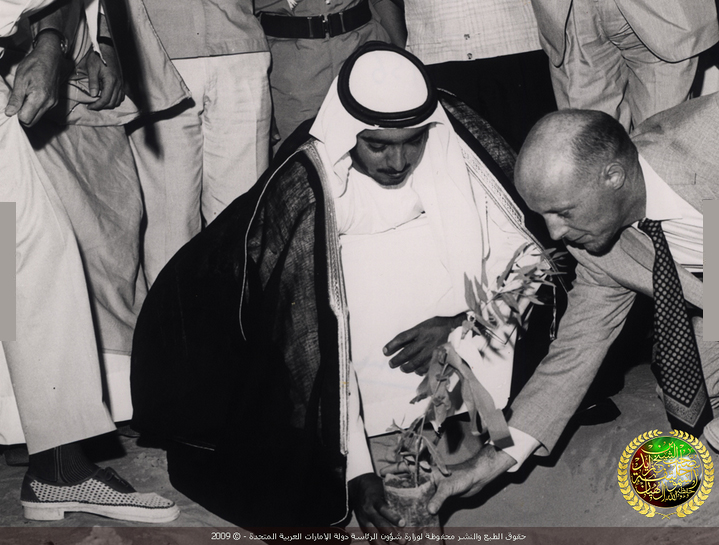 الشيخ زايد بن سلطان وإلى جانبه الشيخ مبارك بن ...