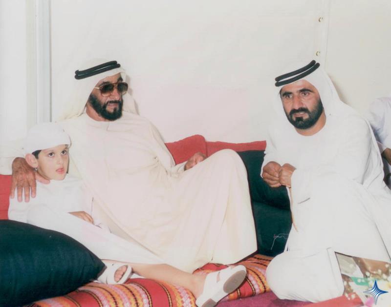 戴安娜王妃访问阿拉伯联合酋长国时与酋长穆罕默德·拉希德合照