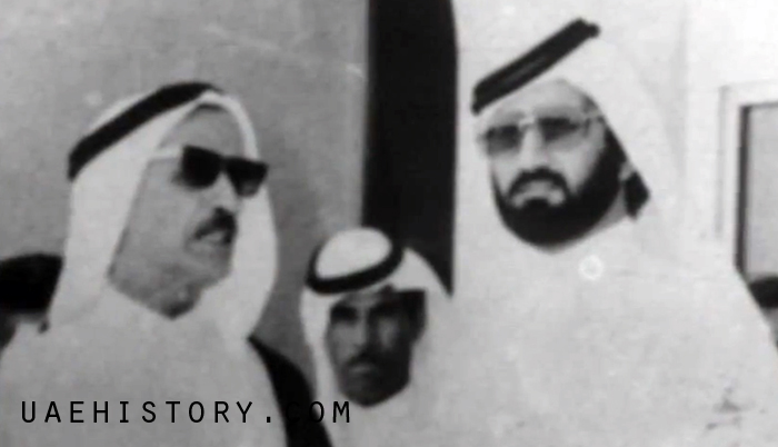 Sheikh Rashid welcoming Sheikh Khalifa in Zabeel