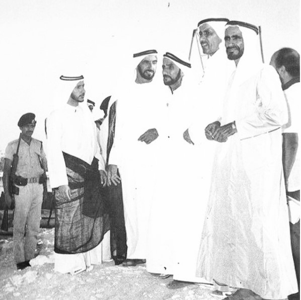 الشيخ زايد بن سلطان وإلى جانبه الشيخ مبارك بن ...