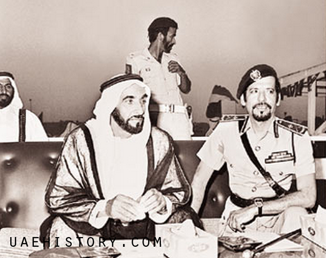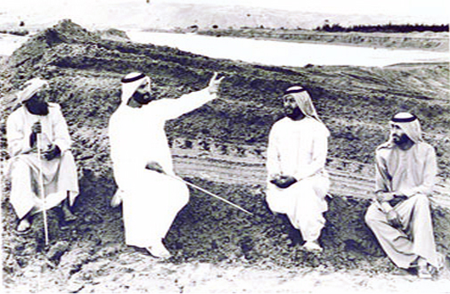 Şeyh Zayed bir denetleme turunda, sağında Şeyh ...