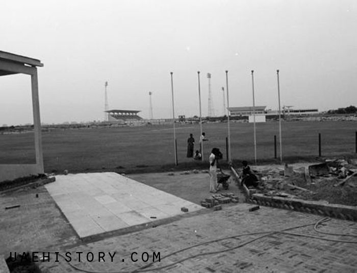 أعمال بناء ملعب الكريكيت في الشارقة عام 1981
