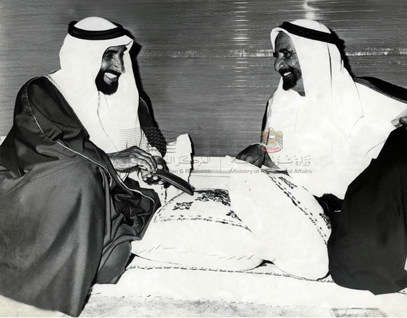 الشيخ زايد بن سلطان والشيخ راشد بن سعيد يتحادثان