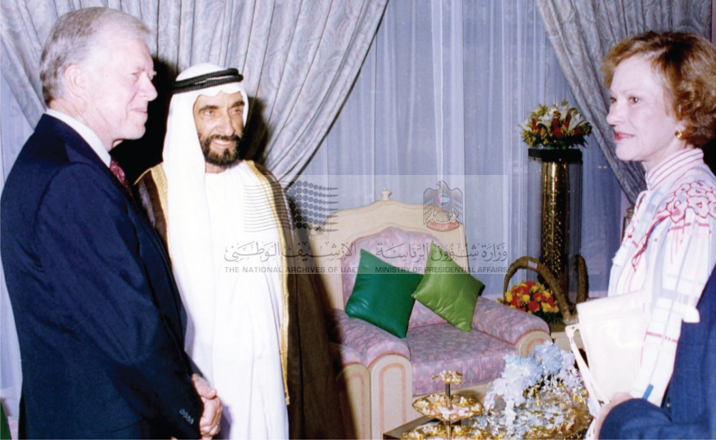 扎耶德酋长1990年7月欢迎美国总统吉米·卡特和其配偶