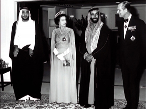 الشيخ زايد مع الملكة إليزابيث الثانية خلال ...