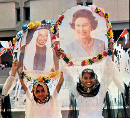 فتاتان ترحبان بالملكة إليزابيث الثانية في دبي ...